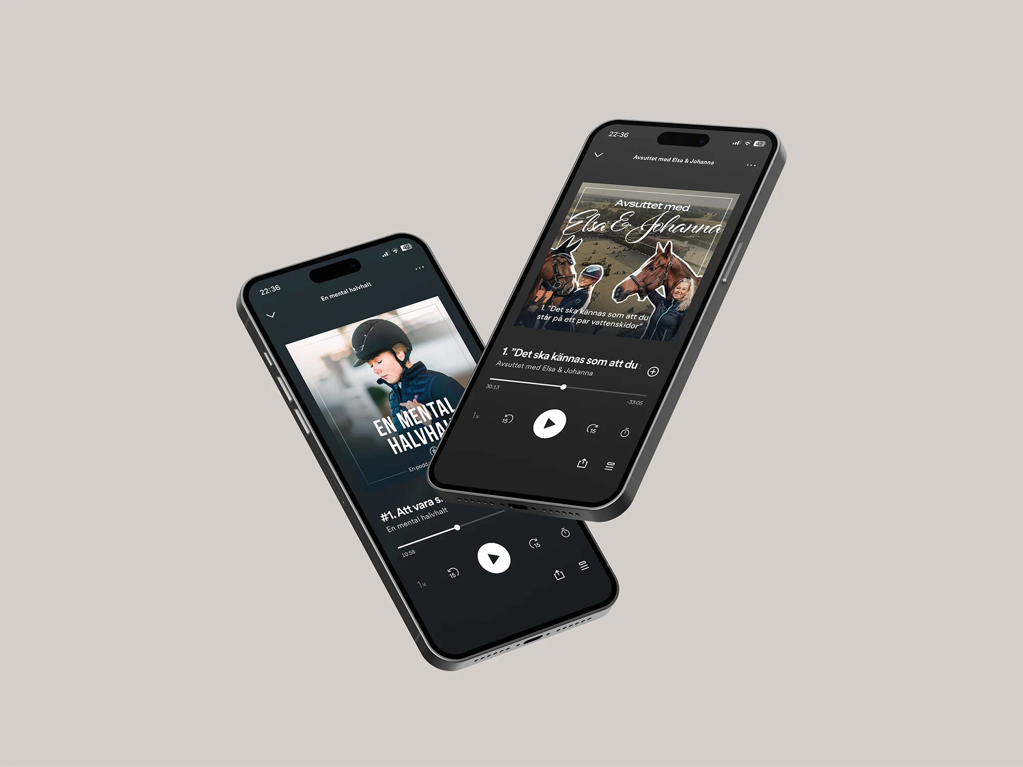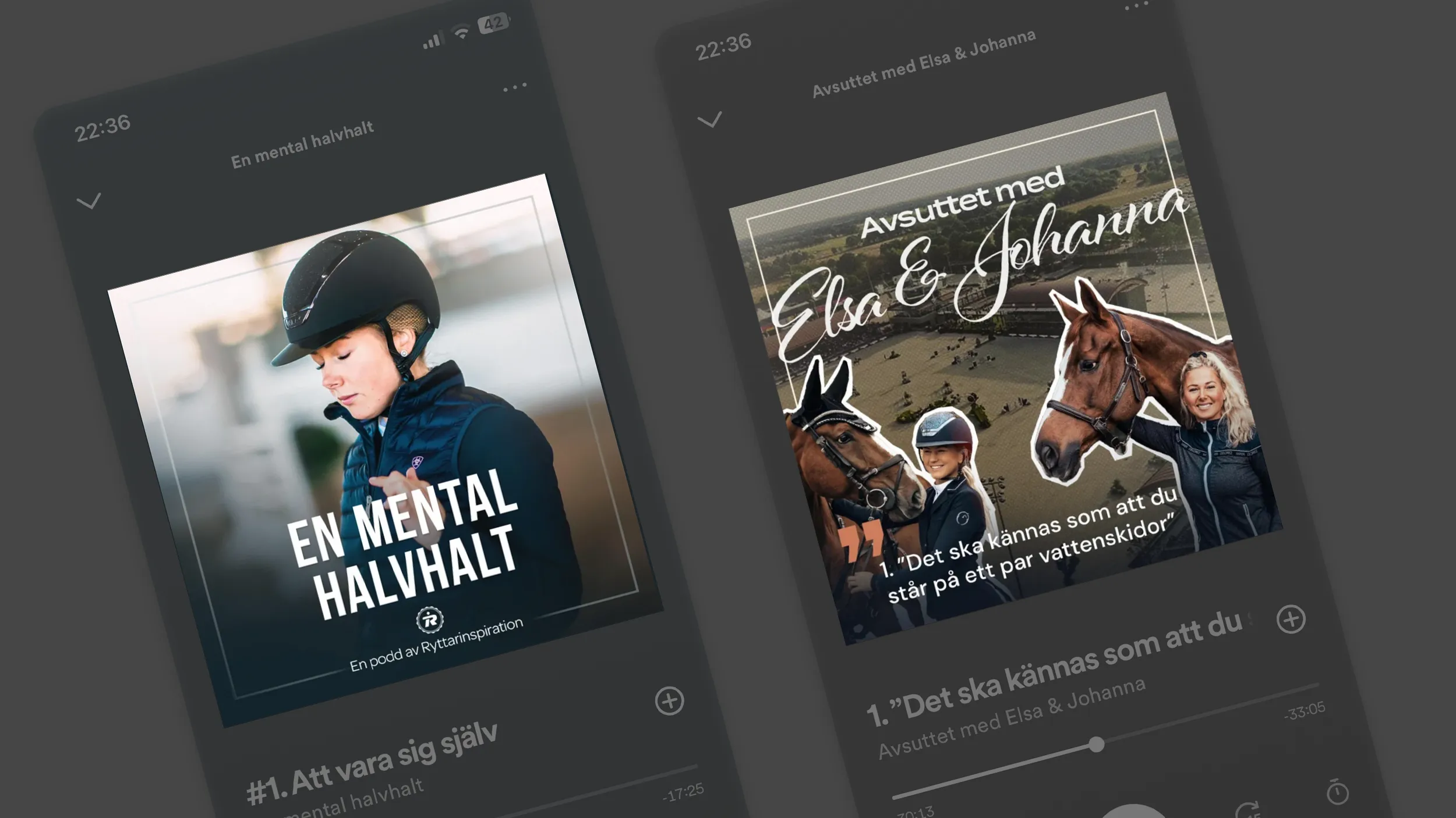 Johanna ville göra en podcast om den mentala biten av att prestera som ryttare och skapade därför podden ”En mental halvhalt” som jag fick äran att göra omslaget till. Podden klättrade snabbt till toppen. Spola fram ett par år och det blev dags för Johanna att skapa podcast nr. 2 med sin kollega i branschen Elsa Berggren, och tillsammans släppte de podden ”Avsuttet med Elsa & Johanna” där jag än en gång göra omslaget till podden.