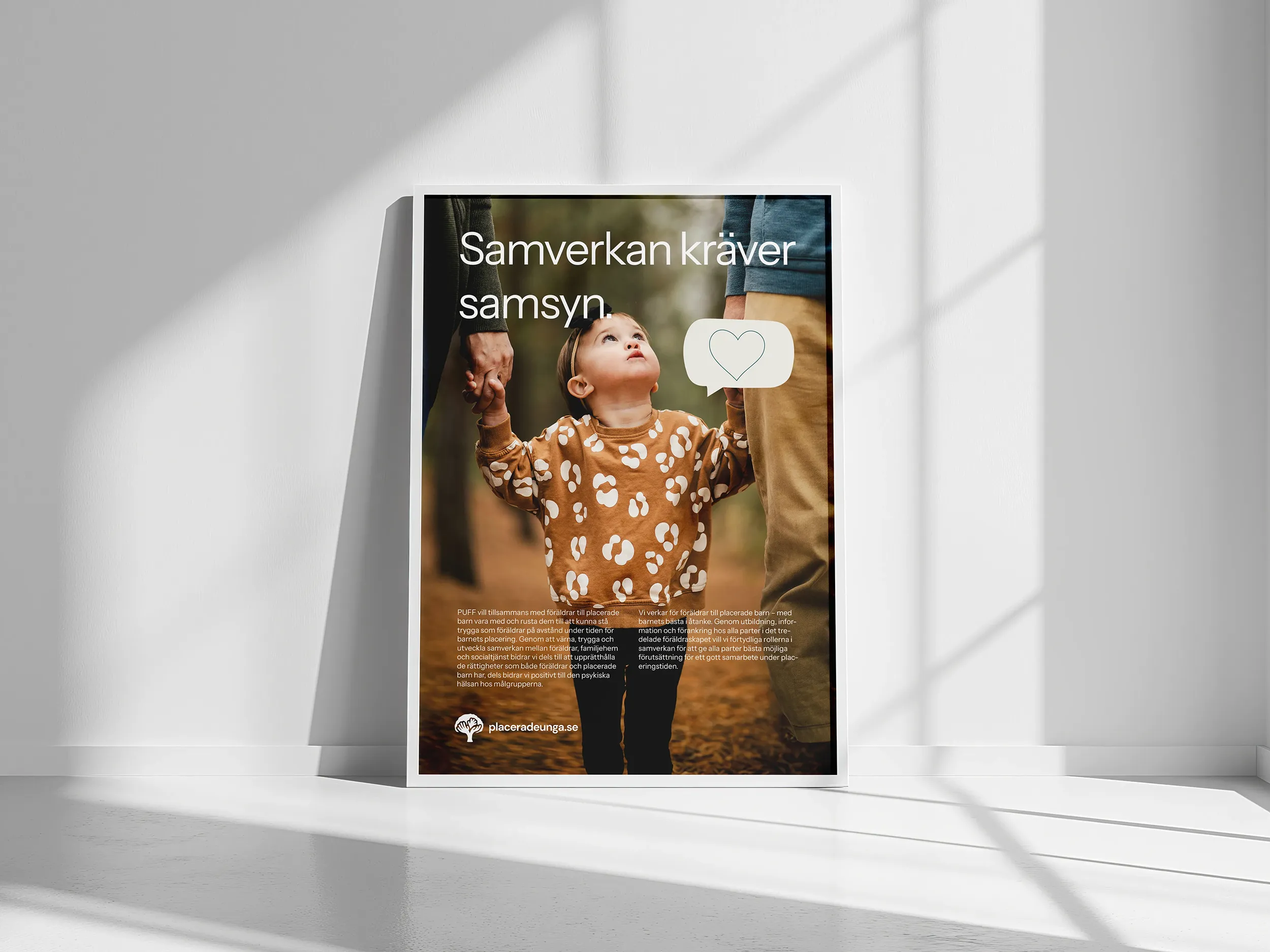 Placerade Ungas Föräldraförening (PUFF) arbetar för att stötta och rusta föräldrar till placerade barn, så att de kan vara trygga i sin föräldraroll trots avståndet. När föreningen insåg att de behövde nå ut bredare och stärka sin röst gentemot organisationer och offentliga aktörer, blev det tydligt att en mer genomtänkt visuell identitet var nödvändig.