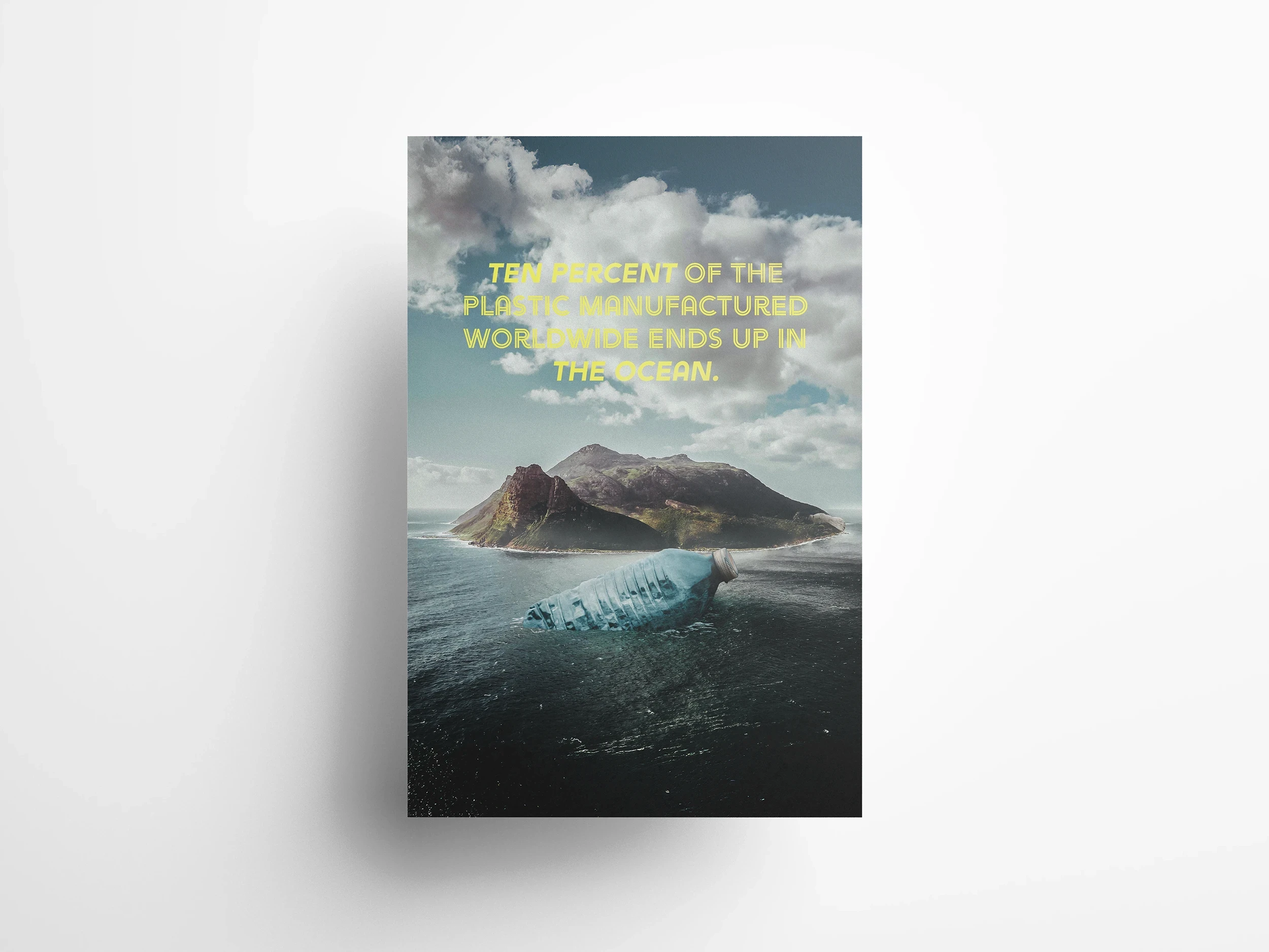 Som ett hängivet fan och vardaglig användare av Unsplash bildbank, deltog jag i kampanjen och skapade en poster föreställande en ö omgiven av en stor plastflaska som flöt runt i havet, vilket symboliserar plastföroreningar i våra oceaner.
