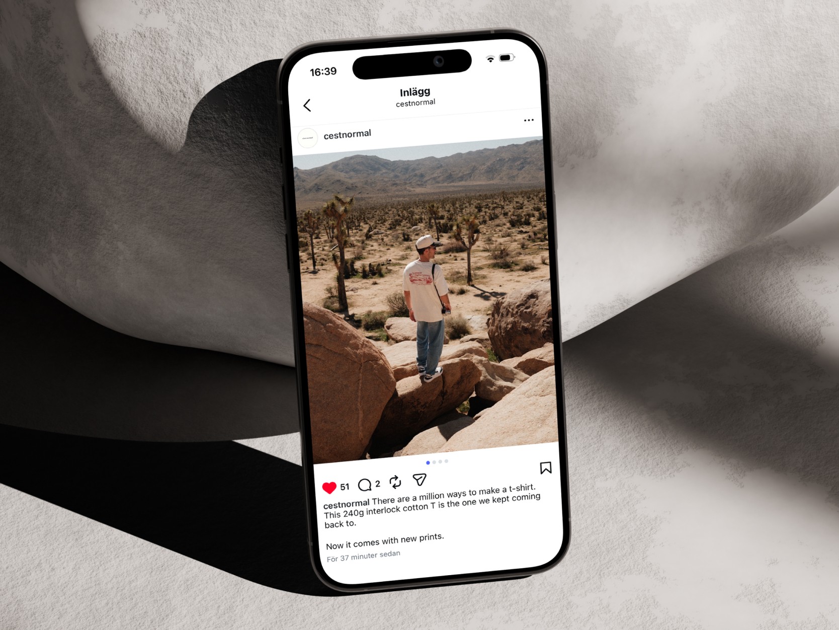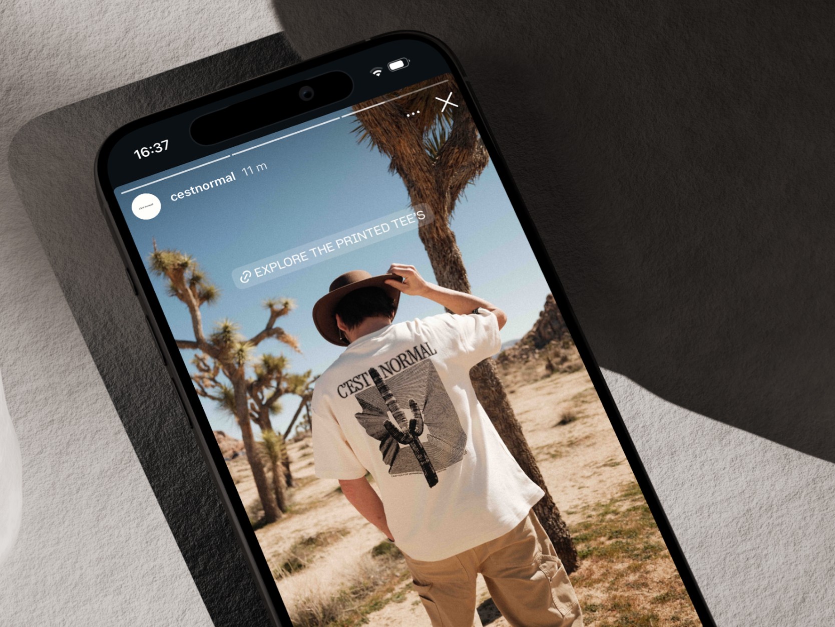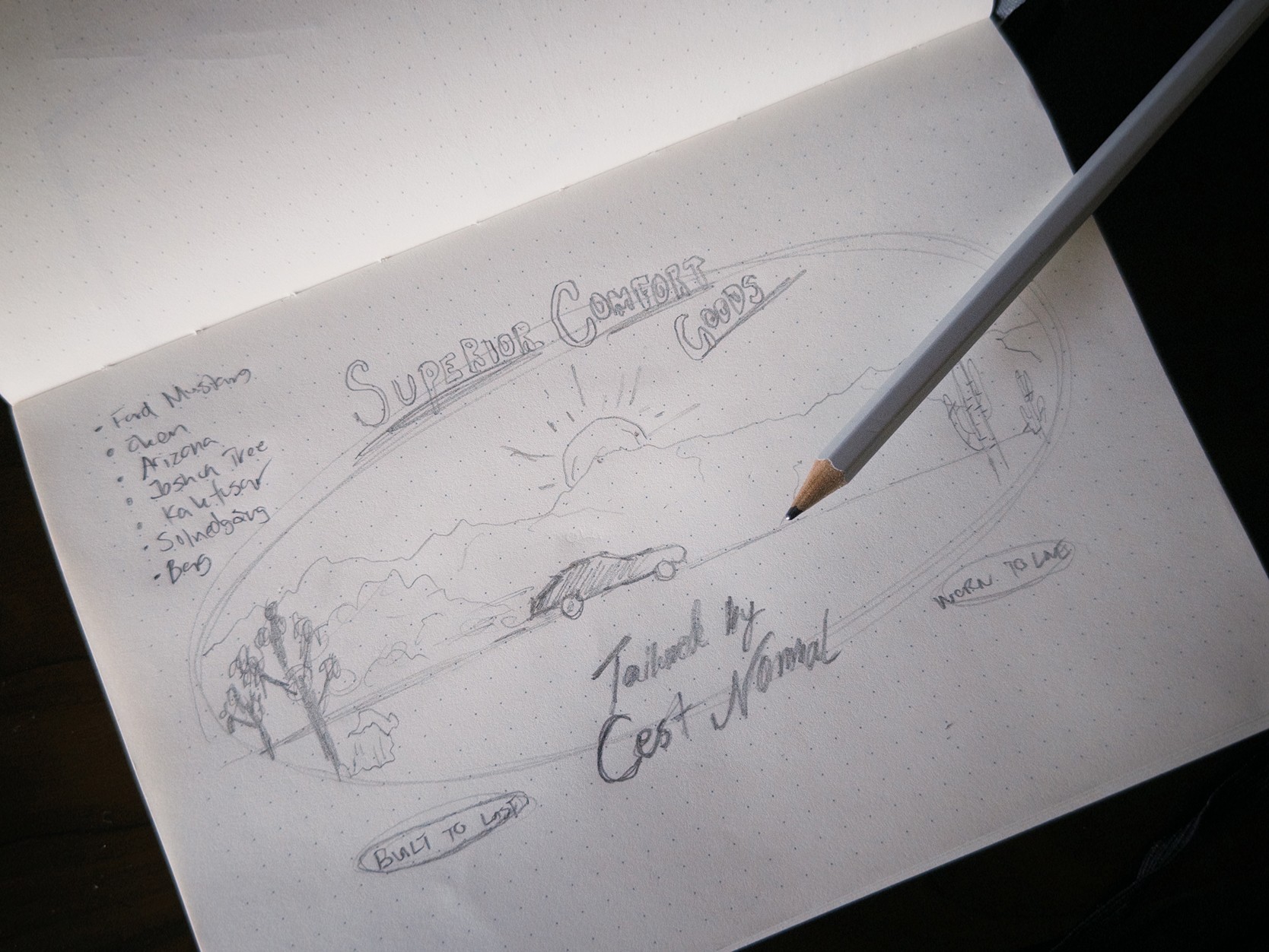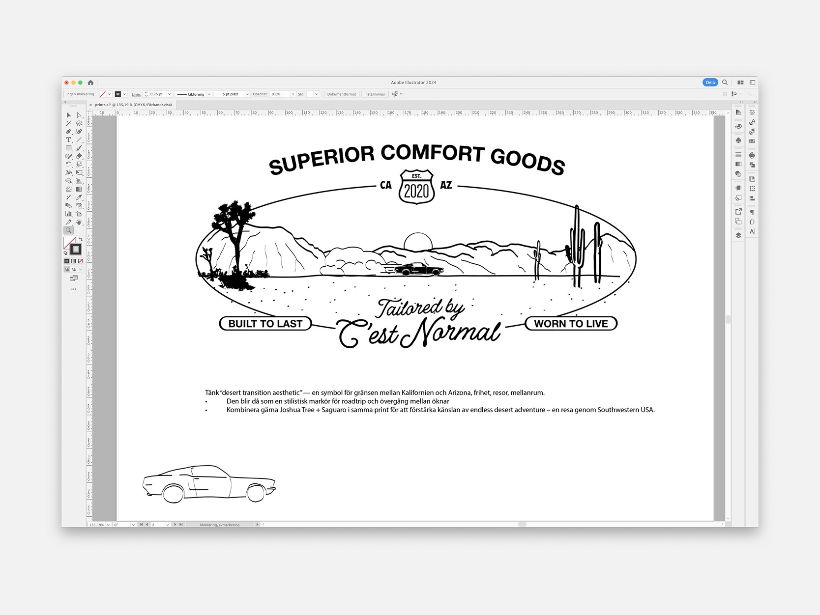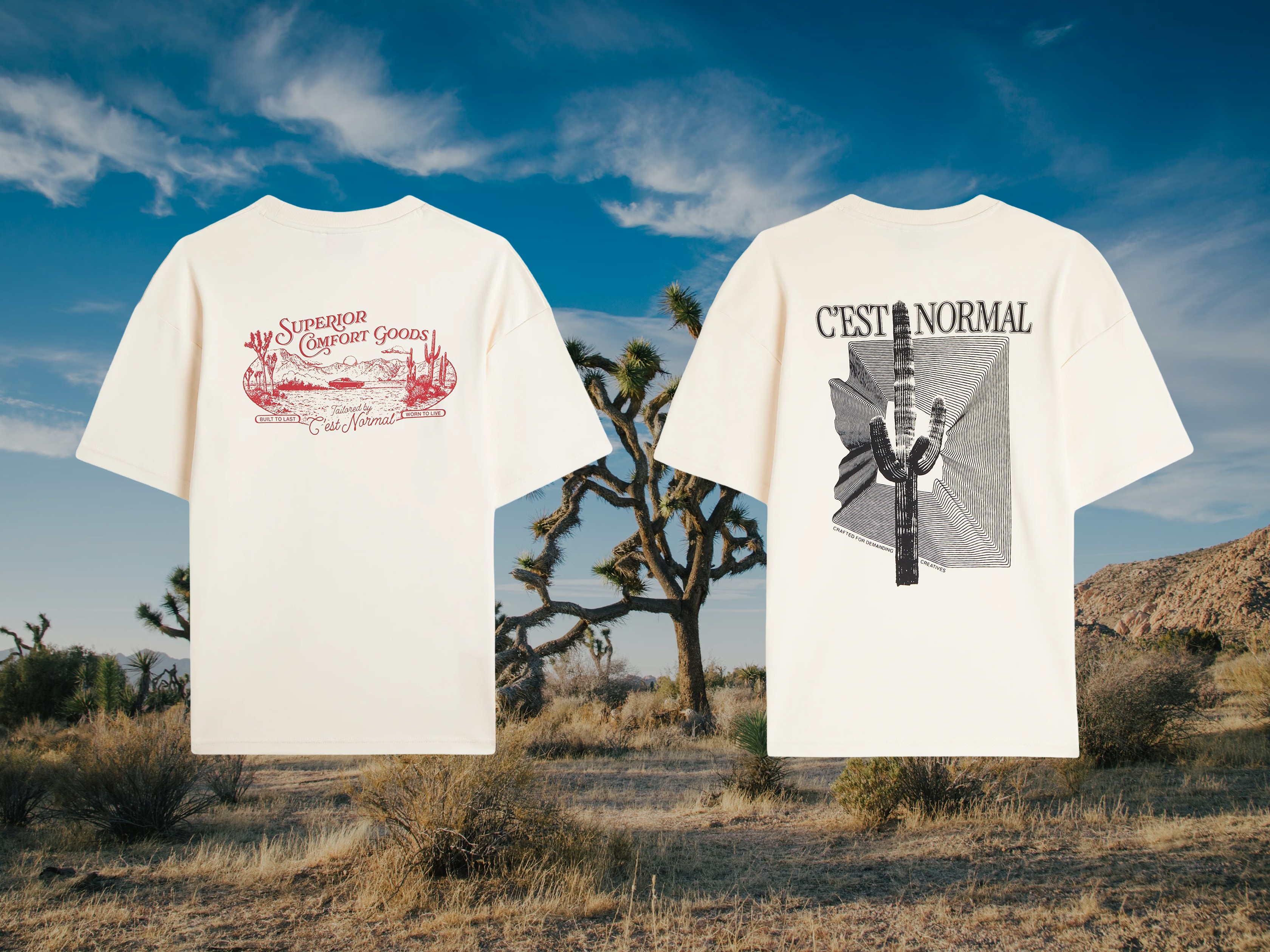 Klädmärket c’est normal ville utforska printed graphic apparel med inspiration från den amerikanska västern. Utifrån en brief med fokus på ökenlandskap i sydvästra USA tog jag fram två grafiska prints.